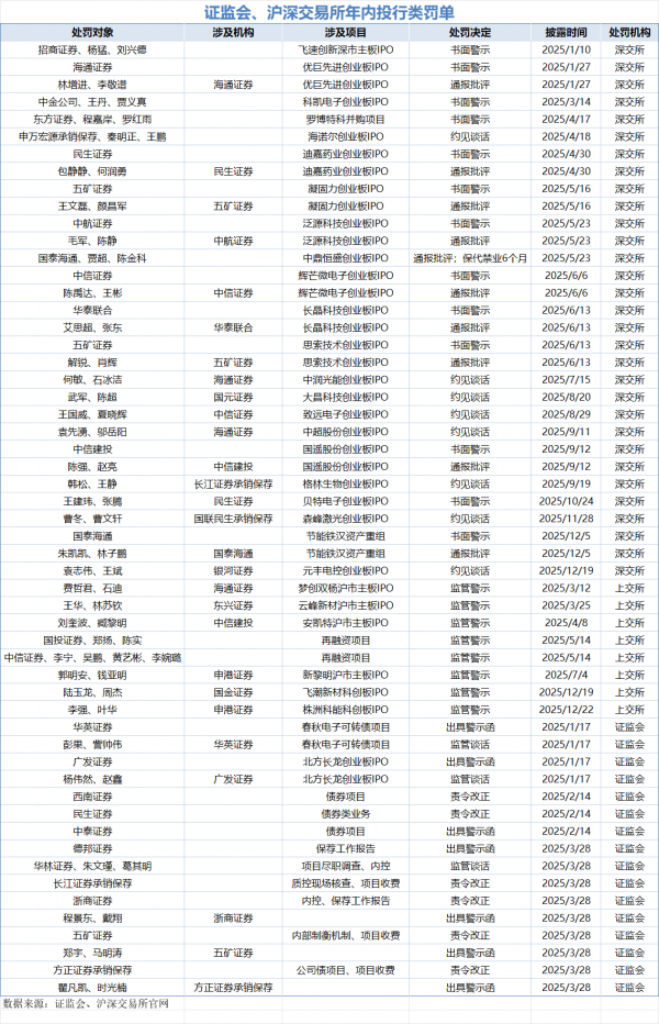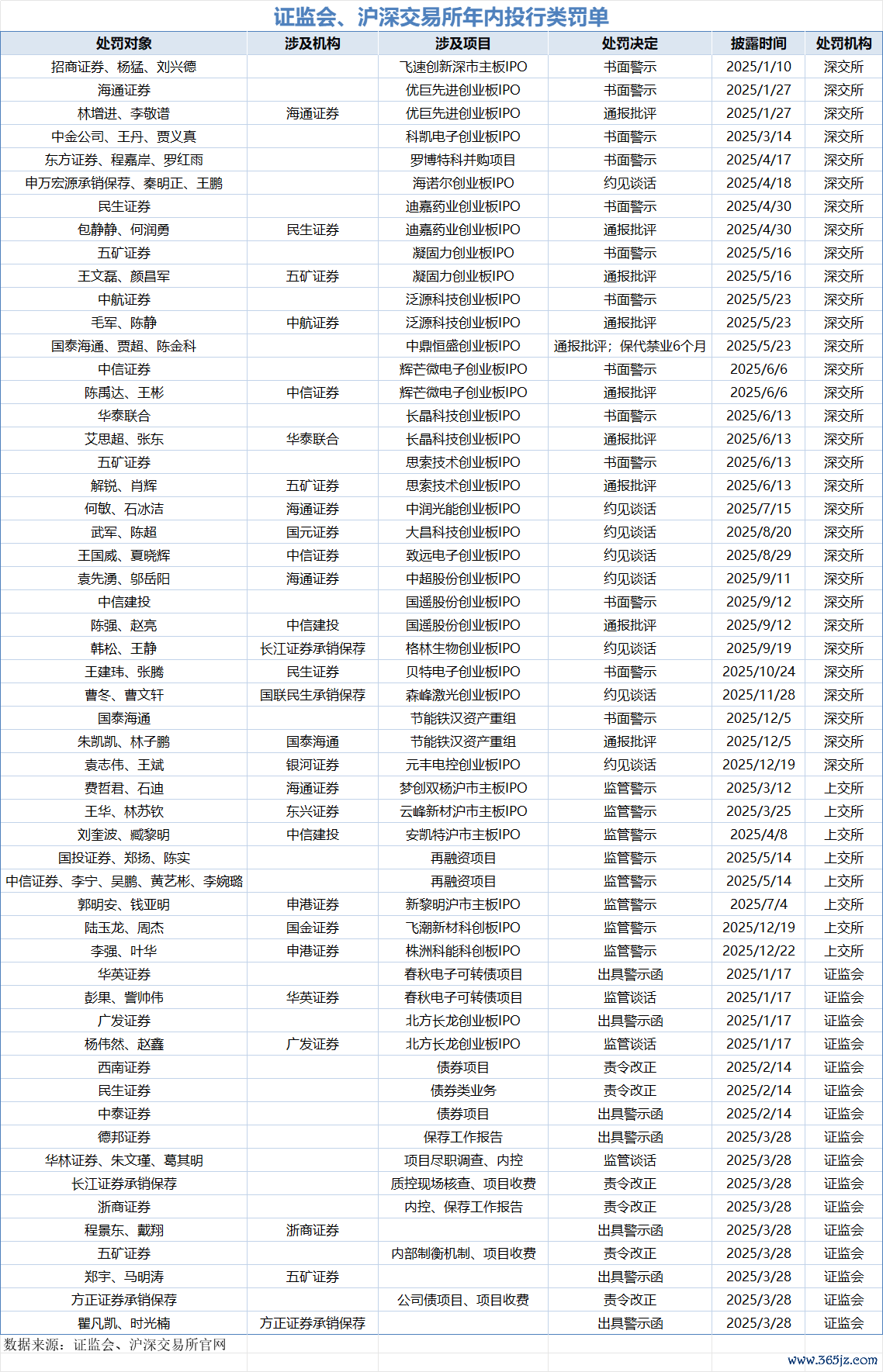 上述案例成为2025年投行严监管的缩影。第一财经把柄证监会、沪深交游所网站统计,岁首于今,上述监管机构经营开出55张投行类罚单,深交所数目最多,达到31张。这些罚单开给了约20家券商,波及近70名保代,这些主体被选用书面警示、约见讲话、暂歇业务阅历等监管措施。